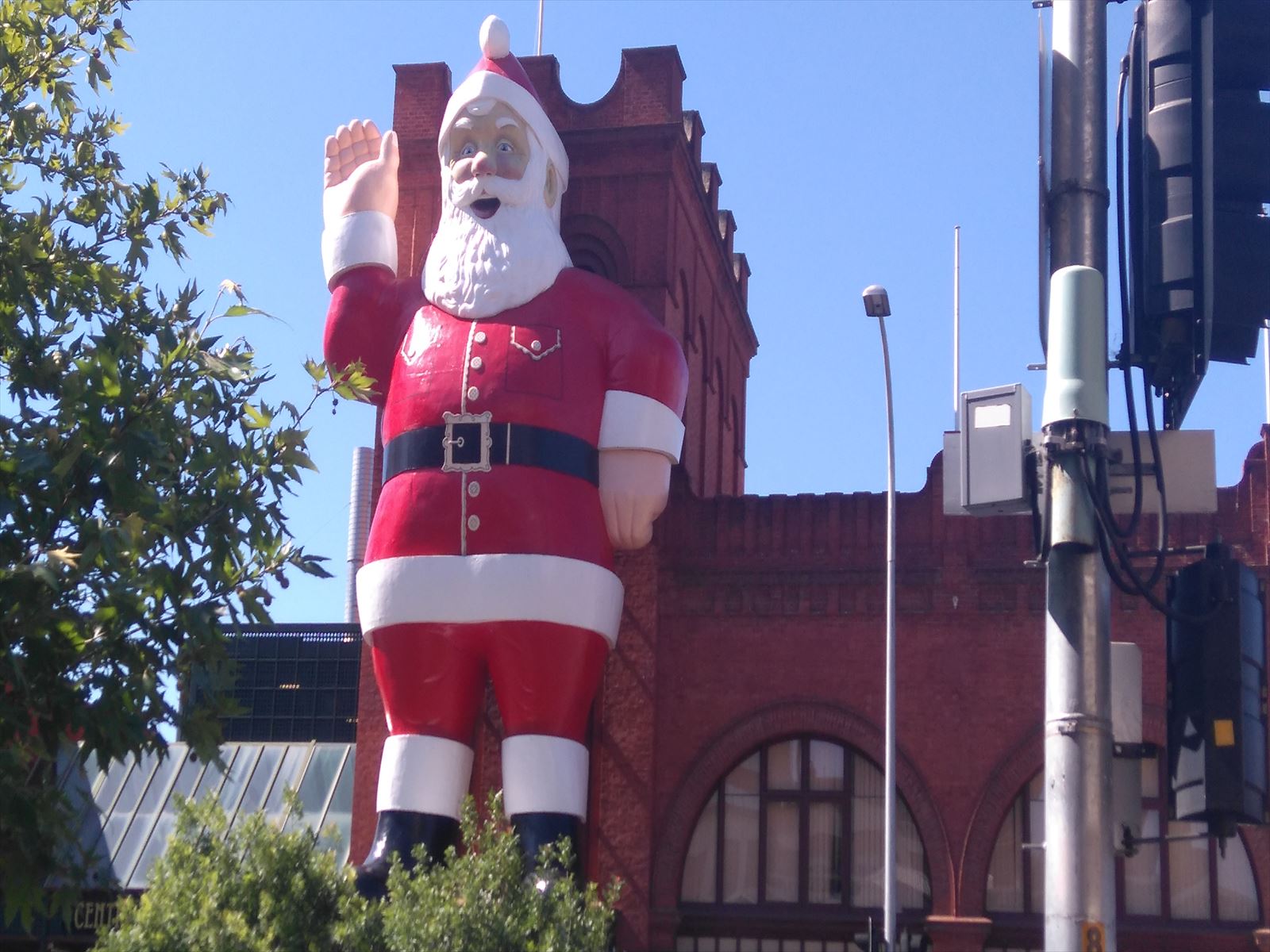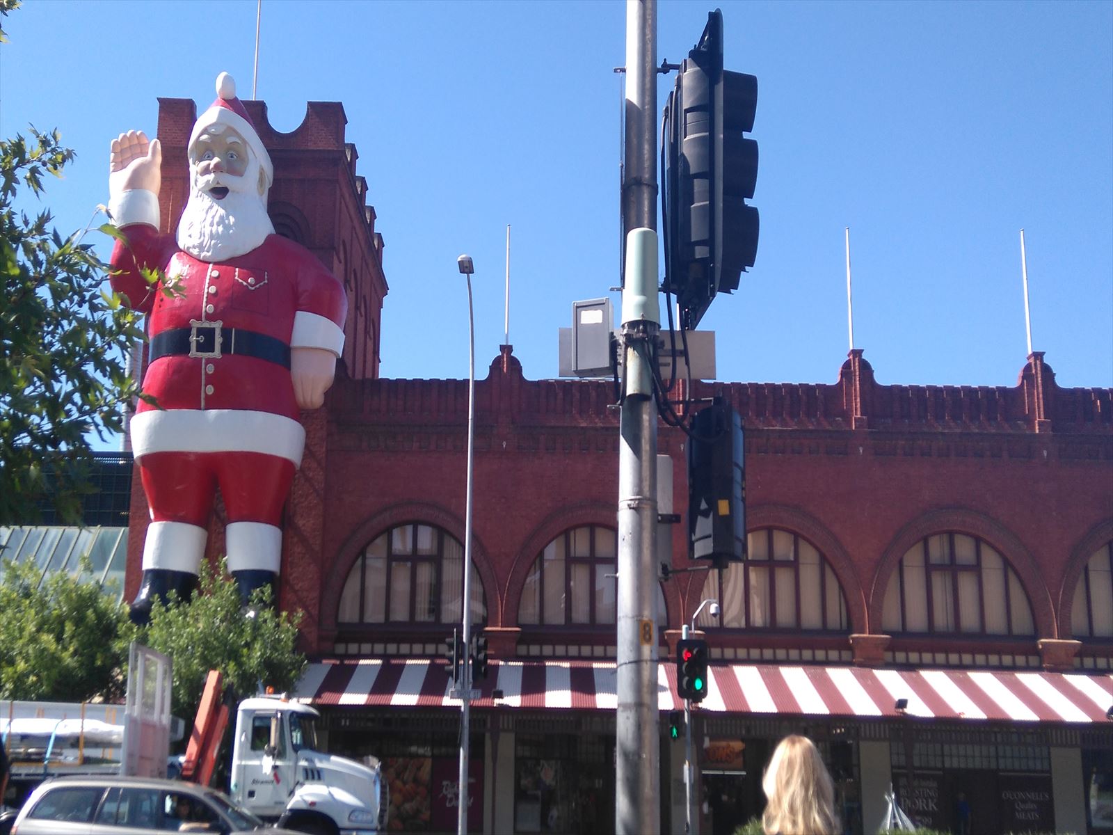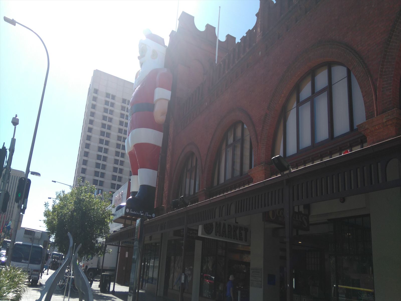 ホーム > 生活 > Giant Santa 2015/11/24 ついに、やってきました。 前方に見えるは… セントラルマーケットに登場のジャイアントサンタ。 すもも一家がアデレードに来た2年前のクリスマスには ランドルモールのDavid Jones の外壁にいましたが (去年はお留守) 改装したら、サンタが上手く設置出来なくなったようで。。。 この度ここにお引越ししてきたそうです。 そのニュースで知ってから、登場を待ちわびてました。 なんと、この方、1960年代からアデレードにいるとか。 朝日をバックに…。 ほんと、ジャイアント。 クリスマスが来るんだなぁ。 すもも、テレビ鑑賞中。 - 生活