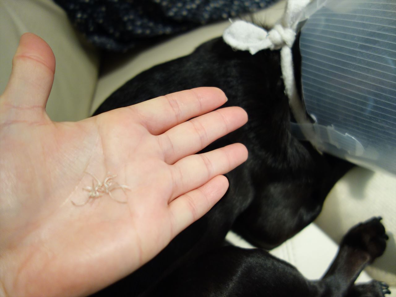 すもも。縫われた部分にかゆみがあるのか、