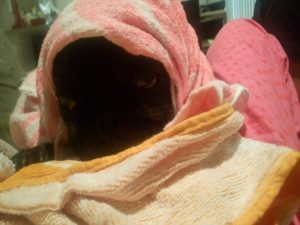 上がった後はタオルに巻かれ~