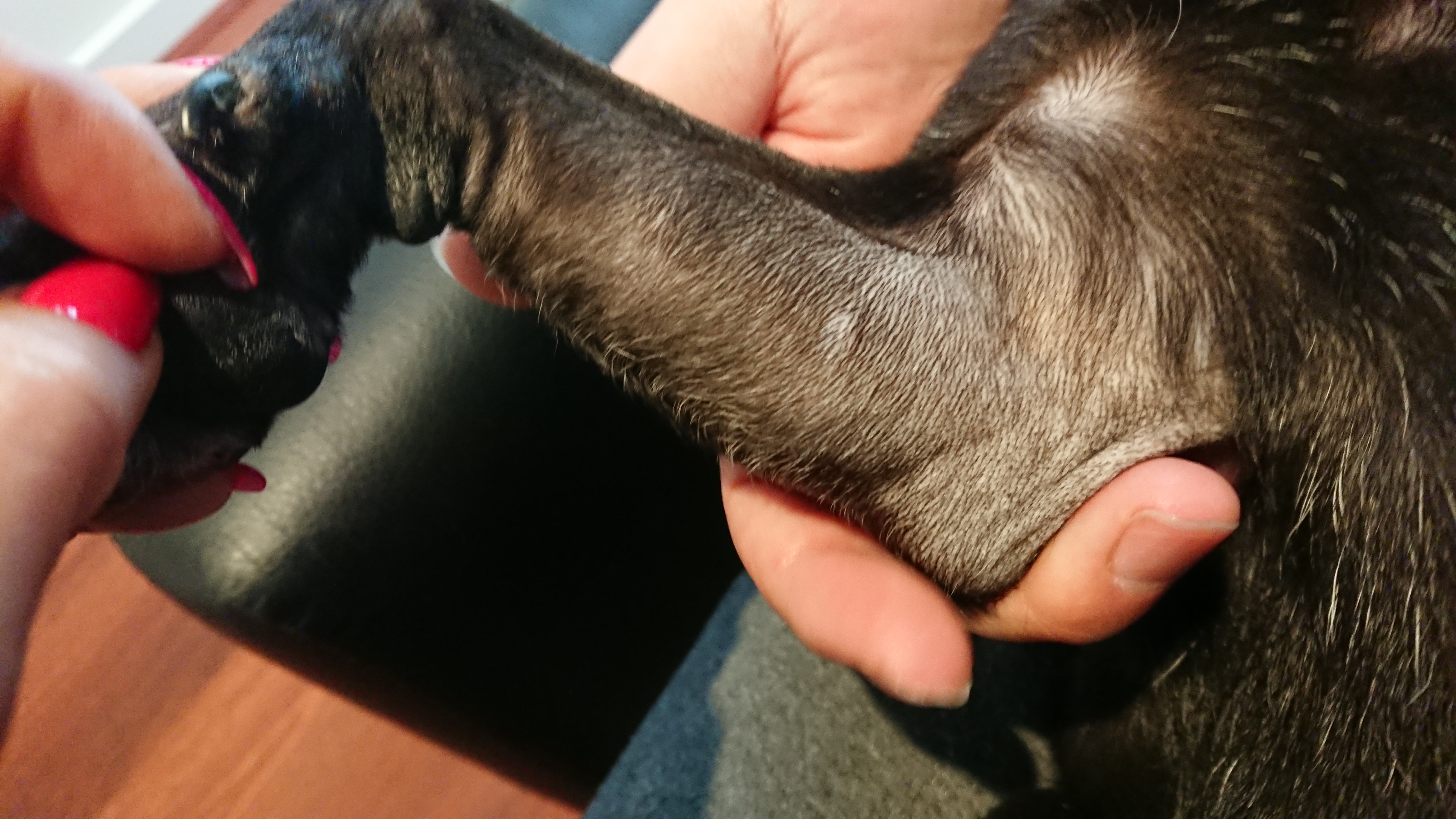 カイカイは止まらず、不快顔。