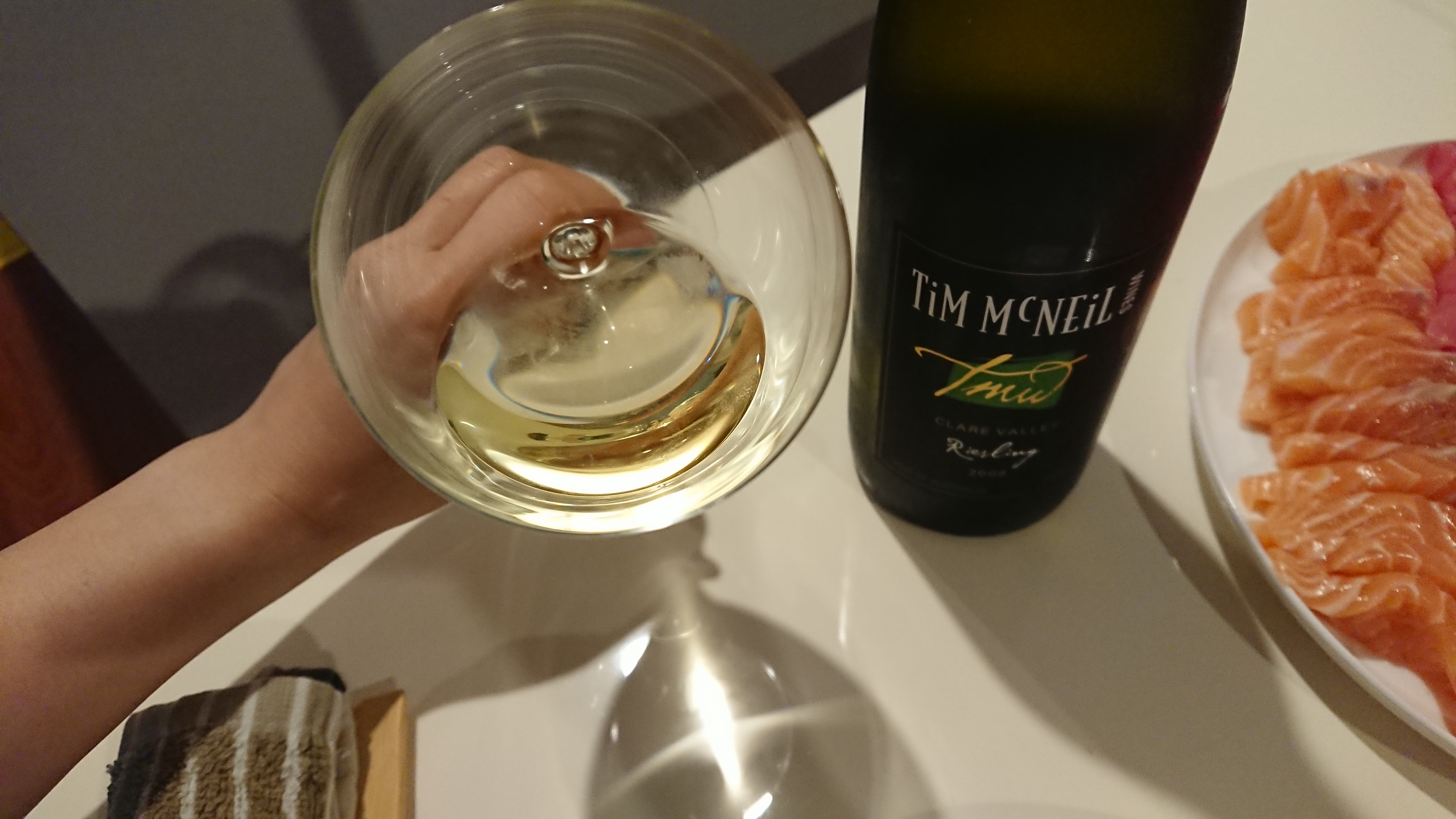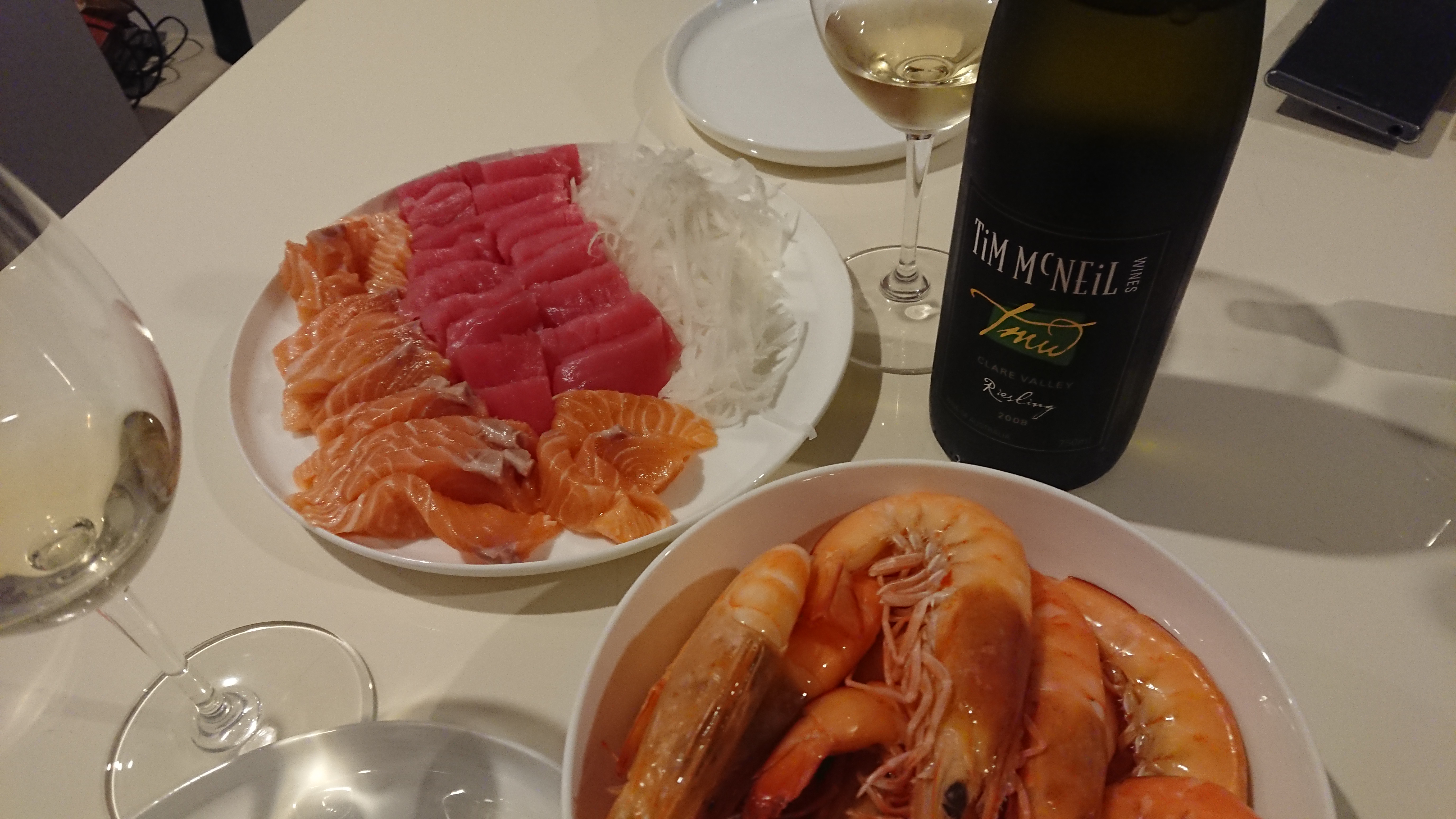 夕飯時には久々白ワイン登場