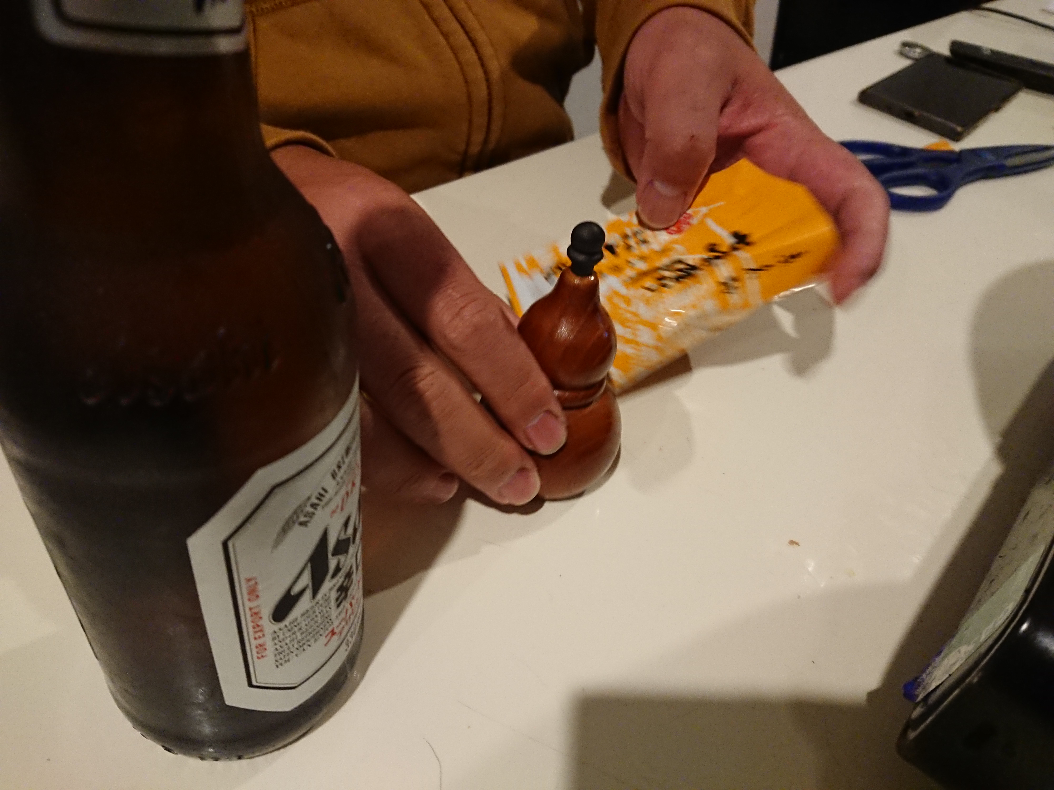すもパパ、ひょうたん容器に注ぎ入れ中。