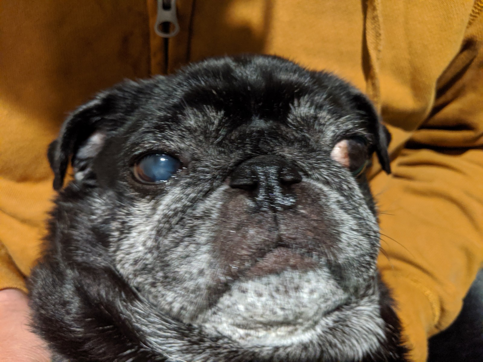 高齢になると白濁してくるし、もとからこんな感じだったか?と言われれば……そう、白っぽくはあった。元のから今は少し白さが増したという感じかな。
