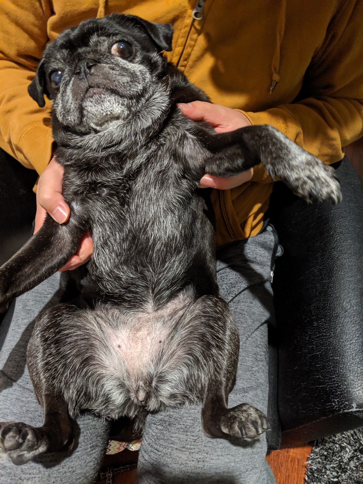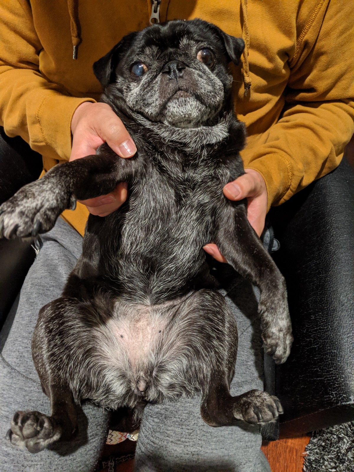 お散歩後の拭き拭きタイム。これを終えればお楽しみごはんタイムだからすももは堪える。